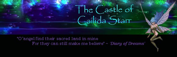 This web site is owned and web-mastered by Cailida Starr; all things posted and the lay-out on this entire web-site are copywrited. Taking anything or copying anything from this site is reffered to as PLAGURISM. The site logo was drawn and edited by me in PhotoShop5. All BG's and clip art otherwise noted are free graphics, and may therefore be taken and used for personal web diversion (NOT profit) only. Any work from The Study is property of the noted artists. If you would like to use their work, email addresses are provided for that very reason. If any copying and/or plagurism is intended I will send my rabid moogle out to eat you.