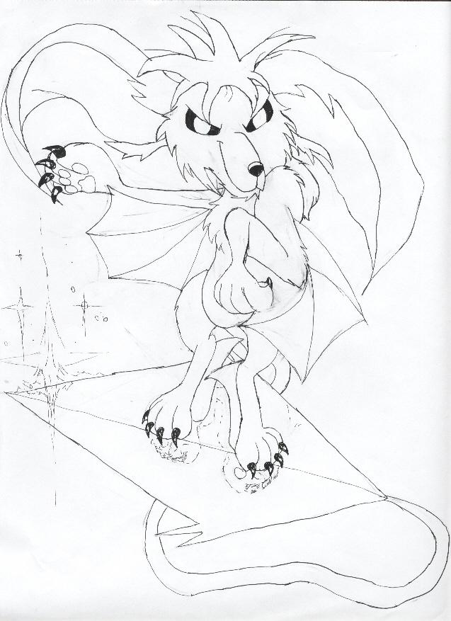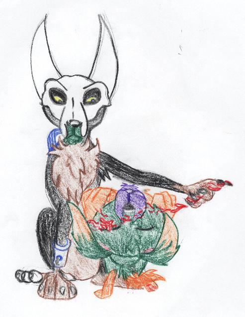 drawing of another lupe, Keizorro. Keizorro is the neopet to Sakorapup and a character from the neopets web site.