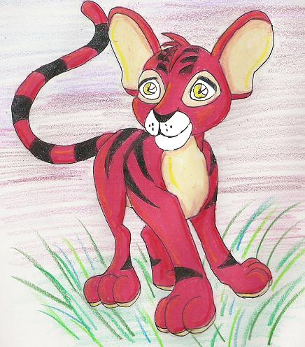 drawing of a red kougra. the red kougra is a character from the neopets web site.