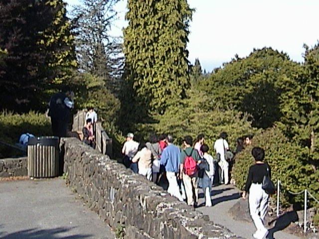 Today was a long bus ride day, and as I have learned from the China trip, it was a sleep on the bus day as well. At the moment I woke up, I realized that allergies suck. I must have went through like 20 billion tissues. It just kept on coming, and I just kept on blowing. Our first stop of the day was Queen Elizabeth Gardens. There was a really nice view of a snow-caped mountain in the background, the city of Vancouver in the middleground, and the bright colors of the flowers in the foreground.