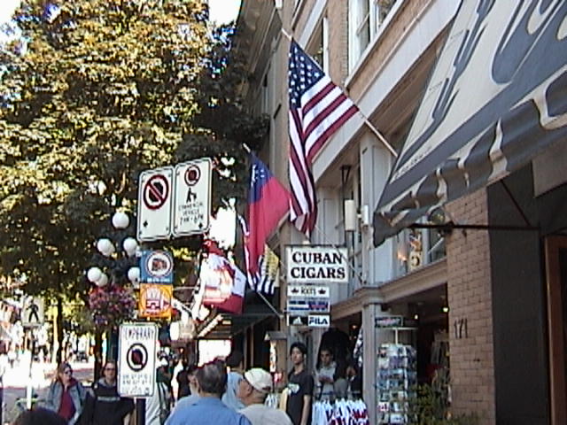 Next it was onto Gastown…yeah…gastown. It was named after some guy (do what you will with that fact). The tour guide explained, but I wasn’t really paying attention. Well, in this quaint little town, we stopped right by a gift shop with an American, Canadian, British Columbian, and…Taiwanese flag. Expecting us maybe? Anyways, this shop is where I got my pooping cow keychain =).