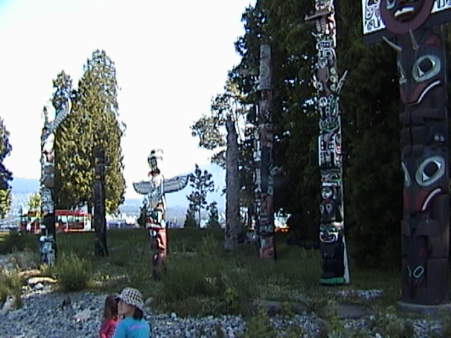 We next passed through downtown Vancouver and moved onto Stanley Park. The whole park is on this island. The rest stop we stopped at had these totem pole replicas and these displays on the Native Americans living in the area. Well now, the highlight of the day was probably the salmon place we went to. It was like an entire ad for salmon products (pate, jerky, raw, whatever). The salmon wasn’t the interesting part, it was the poster and pictures inside the store. They were pictures of Wreck Beach, which also happens to be a “clothing optional” area, meaning there were many ugly naked people. The shocking thing was that both adults and the little kids on our trip admired it…/shudder. Our next stop was a Chinese supercomplex called Yaohan, I think. There was a gigantic foodcourt, where we had lunch and the parents bought like 20 cups of boba (it was like buy 10 get one free); a supermarket, where the moms bought a bunch of snacks and fruits; and a bunch of stores on the second floor, all with Asian products and run by Asian people. I walked into the music store and found all these Asian pop CDs (Namie Amuro, BoA, CoCo, etc.). One thing I noticed was the soda cans. First of all, they have both English and French on them, but they don’t have that nutrition facts box, like stuff in the US does.