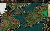Land behind the house to the bottom left of the screen. Kill the guard in the machine gun nest with your knife and run back behind the house. Select all three commandos and have their pistols ready. Waste the guards when they appear around the corner with the pistols or with the Driver's machine gun. Have the Green Beret carry the barrels over to the relay station and blow it up by shooting one of the barrels from a distance.