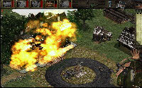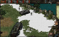 When the three-man patrol reaches the rock, turn the noise maker on. The three patrolling guards, as well as the single stationary guard to the north of that rock outcropping, will come to investigate. As soon as they're over, it's time to move. Have your Sniper and Driver crawl to the north, behind the occupied guards. Your next target is that guard to the left of the unoccupied Panzer II tank; when he's looking away, have the sniper take him out. Then, while the guards at the noise maker are still distracted, stand up and run for the tank. You'll make it, and when you do, all hell will break loose....