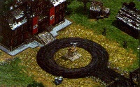 You'll notice that there are two stationary guards in this inner section, both facing west. One is located behind the headquarters, and the other is right in front, next to the fountain. It's a pretty easy affair to have the Green Beret ambush these guys from behind while the patrolling guards have their backs turned...just makes sure you do it quickly, and hide their bodies behind the headquarters. Now it's just a matter of taking out the patrol, and destroying the archway to the inner compound so the guards from outside can't get in. Pretty convenient that you have two grenades left, huh? All you need to do is have the Sapper run after the three patrolling guards when their backs are to you, and blow them to bits with a grenade. Then, immediately blow the archway leading into the inner compound. Now you're home free! Set the explosives, blow the headquarters, and hightail it out of there using the boat. No need to worry about the guards at the dock -- you blew them away ages ago!