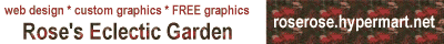 Copyrights, etc...All graphics and content on this page were created by me, my Elf and I unless otherwise noted, which means they're copyrighted and cannot be redistributed without my permission. Do NOT take graphics from my site. If you're looking for free graphics, take a look at Rose's Eclectic Garden -- there aren't any fantasy-related graphics there yet, but more are added each week and there should be swords and dragons and things of that ilk soon. Please note that DragonRealms is a trademark of Simutronics corp., and references to specific DragonRealms creatures, items, etc., are copyright Simutronics. All poetry and/or fiction on this site is my property; I may be adding works by others eventually, and those works will belong exclusively to the authors. No redistribution is allowed -- and yes, this means you cannot even print it out. End of lecture. :)