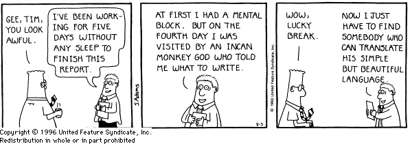 I'm a Very BIG Dilbert fan... Here ae some of my Favorite ones by Scott Adams, Dilbert's creator.