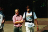 Robert and Grishmo, in front of the "Pagoda", peer into the sun |