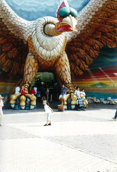 Gytar posing in front of indoor rollercoaster "Bird Rok" |