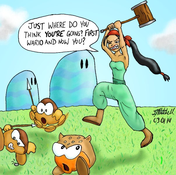 EQUALITY NOW! The content of this page may not be suitable for younger viewers. if it were a movie, it would be rated "PG". In the April 1999 issue of Nintendo Power, Claire Fenwick wrote a letter saying, "...it's frustrating when the story (and heroine's wardrobe) is aimed at male gamers." Gender equality, or the lack of it, in gaming has always been annoying to me, so I've decided to take a stand. Frankly, I think anyone who doesn't see that women are exploited in videogames has been hit over the head with the dumb-stick a few too many times. But that's not a very nice way to argue my point of view. So, I've decided to try something more creative. I'm going to let the females of gaming speak for themselves...click on a name to see a humorous yet thought-provoking (well, mostly humorous) idea of what that character thinks of the place she's been given in the game world.