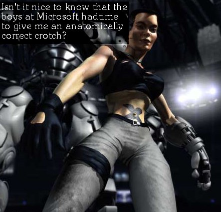 of all time" poll run by IGN. ![]() Lara Croft is arguably the most exploited woman in videogames. Eidos and it's employees try very hard to claim that she's a "positive role-model" for girls, but that's hard to believe when they've released official Playboy-style measurements (Bust, waist, hips) for her, and even a couple of semi-nude pictures that only hid the "naughty" bits. ![]() When I say "damsel in distress", who do you think of? Princess Peach Toadstool has been kidnapped in nearly 10 of the popular Super Mario games, and a Peach-clone called Princess Daisy was kidnapped in Super Mario Land. Now I have to admit that Nintendo has started giving her more chances to participate, especially in "spin-offs" like Mario Party which is great. Yet she still has to do everything in a pink ballgown and high heels. ![]() Fighting games were among the first titles to start making big-breasted, scantily clad heroines, and Cammy is one of the most risque, with a one-piece so small she moons the players every time she turns her back to the screen. ![]() Samus Aran is one of the few women in video games who is actually really equal...almost. She gets to wear a full suit of armour into battle (much smarter than taking on bad guys in a skimpy tank top and shorts), and she is the star of the game. Just one problem: By finishing the Metroid games faster, you get a "reward"; Samus strips down to her leotards at the end. OK, OK, it's supposed a "surprise" (Wow! It's a girl under there!) But let's face it, everyone knows that by now, and why does she wear such revealing clothes under the suit? I've heard more than one person argue that it's probably hot under the suit, but this is a lame excuse when Nintendo could simply show a close-up of her face with the helmet off instead of a semi nude cheesecake picture. ![]() When Microsoft unveiled the X-Box, they decided that they had to have a "babe" to promote it. Raven is that babe. One of the most annoying things about Raven is that a lot of guys actually claim that she's ugly. Well, she is a bit muscular, to be fair, but what do you expect? A supermodel marine? Not likely! And the fact of the matter is, she still has a beyond perfect figure shown off with tight, skimpy clothes, both of which were being used shamelessly to sell the Xbox. Thankfully, Raven was relegated to the land of tech demos: it doesn't look like she'll get her own game.