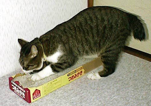 ストレス解消の爪とぎだニャン。