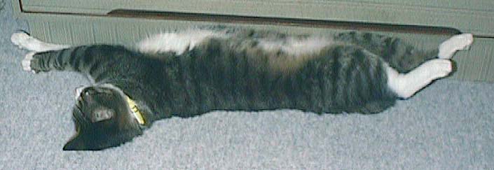 手の先 〜 おなか 〜 足の先 をペッタリ冷たいタンスにつければ、チョットは涼しくなるニャン。