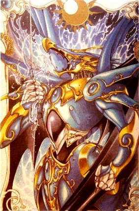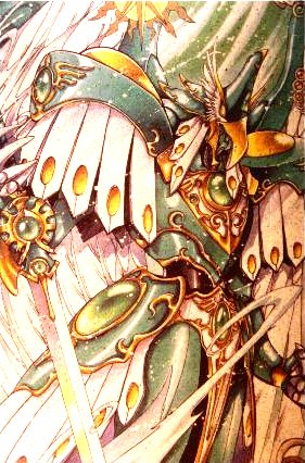 | Windom This was the second Genie that was awakened from its sleep. Anais also proved to this genie the force of her hearth by helping her friends when they needed her the most. She fought against this enemy called Nova that was sent by Zagato's command. He failed in his mission to stop the girls to become Magic Knights when Anais' Genie appeared in front of him a blew him away with its unique power. After the fight was over and the girls were all right, the genie with the appearance of a phoenix, changed into the guardian robot that will serve Anais in combat. Then, the girls armors improved and their swords grew to a second stage of their maximum size preparing them for the final confrontation with Zagato. |