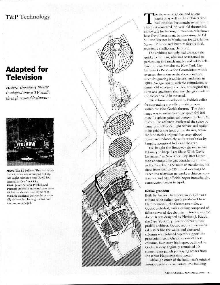 Hammerstein's Theater (now The Ed Sullivan Theater) was renovated in six months for the first broadcast.