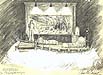 Theatre productions: models, sketches and photos; above, a sketch of "A Kiss Is Still A Kiss."