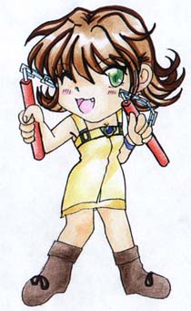 ~ My comment ~ S.D. set : Ouistis , Selphie , Fuujin , Ellone , Julia and Rain. Draw and color with pencil color and magic color. I'm very hyper when drawing this. They finished in 2 day but then the fire were died out so I still didn't draw Rinoa and Mama Sensei yet (until now... *sweats* ) Ellone is the first one I drew in this s.d. set. I used paintbrush to drew a line so it may be look differnt from other 5 pictures here. I kinda like Quistis and Julia pictures specially. [ Back to Main ] [ Next ] [ ff7 ] [ GW ] [ Misc ] [ gifts ]