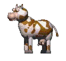A cow that stands in one place and gives milk. Set a milk bottle underneath