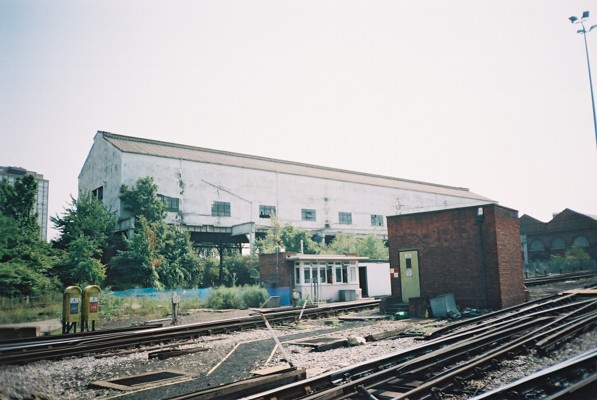 After being picked up by another train full of bemused passengers and getting back to White City, we entered the Wood Lane train depot site and walked alongside the approach tracks (which had been isolated for safety) to get to the Westbound platform. En route we had a good view of one of the 1908 exhibition halls, part of the original 'White City'.