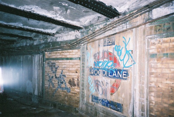 The westbound platform is also badly vandalised but again you see evidence of its original purpose as a station for the 1908 exhibition.