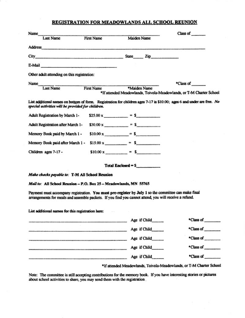 printed, and submitted to attend the reunion.