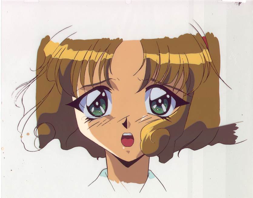 | My second Fuu cel When I went to FanimeCon 98 I saw this Fuu cel. It's so cute and pretty(!) that I just can't help myself, even though it did cost a bit. But it's a great shot of Fuu without glasses so it was worth it. I also scanned the pencil drawing that came with the cel. |