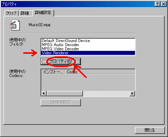 設定の方法は、Windows Media PlayerでVCDのファイルを開いた状態で、メニューから[ファイル(F)]-[プロパティ(R)]を選び、出て来たプロパティのダイアログポックスの[詳細設定]のタブを選び、[使用中のフィルタ:]の中から[Video Renderer]を選択して[プロパティ(R)]のボタンを押して、