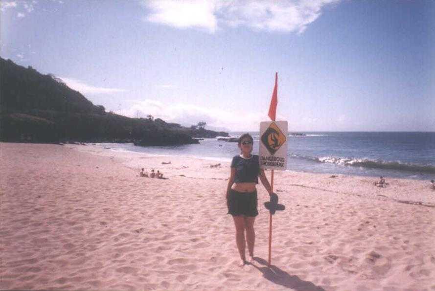 This is Ayako at Waimea beach. Sometimes during the winter, the waves reach 25-30 feet high!