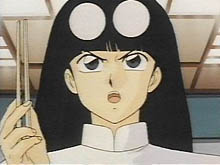 de los personajes de la serie se pelean (ella está enfadada). Después Ranma descubrirá