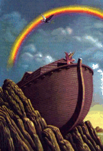 Months after the Ark had settled on Mount Ararat, the animals came out to breed and re-populate the earth. Two by two, the dinosaurs, along with all other animals, left the landing place of the Ark and began to move over the earth's surface. But the world they came out to was a different world from the one they knew before Noah's Flood. It had been ravaged by watery violence. The water canopy, which the Bible implies existed around the earth's atmosphere up to the time of Noah's Flood, was gone. No longer was the world a greenhouse covered with lush vegetation. The massive numbers of them in fossil graveyards, their wide distribution, and the presence of whole skeletons which show convincing evidence of being rapidly buried, all testify to massive flooding.