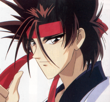 This hunk is Sagara Sanosuke. He is a gambler and a street fighter. He often goes to the Akabeko and the Kamiya Dojo for free meals. But, beneath his easy going and irresponsible facade, he is a very determined fighter. He's only 19, by the way.