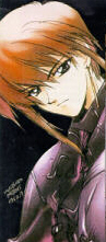 To your right, you see Ran in his usual BABE form. I swear, the color black looks esp. GOOD on red haired bishounens!! ^_^ However, I really wonder why he poses like THAT.