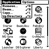 メニューから Rectangleで指定されたアプリケーションは削除、ビーム、コピーすることができます。ビームは一度 MS Gateで本体にコピーすることなくビーム可能です。またコピーは、MemoryStickと本体の RAMの間で行われます。このため、MSLauncherは Launcherだけでなく MS Gateの機能も含んでいます。