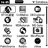 既存の Launcherの右上のカテゴリの表示の代わりに MS App, MS All, Databaseという Popup Triggerが表示されています。MS Appでは、Memory Stick上のアプリケーションのみが表示、MS Allでは Databaseを含め実行できないファイルまですべて表示します。Databaseは本体の Flash ROMおよび RAMにインストールしてあるアプリケーションが表示されます。