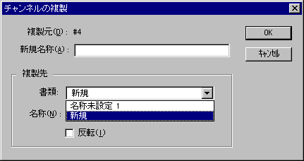 「書類」を「新規」にし、OKを押せばチャンネルが新規画像として開かれますので、