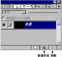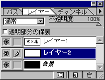 ここで↓のパレットの説明です。これはレイヤーパレットに限ったことではないので、以下に扱うチャンネルでも同じように扱います。