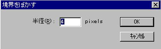 いまだ文字の形に選択されたままの状態でメニューから「選択範囲」→「境界をぼかす」を選び、出てきた画面で4または5という数字を入れてOKしましょう。