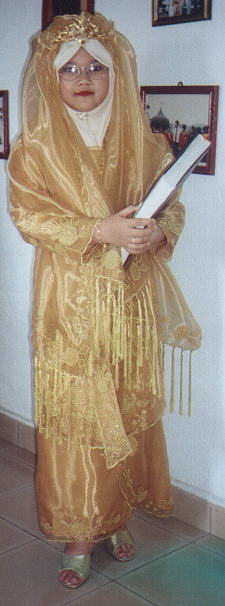 All decked out in her finery for her Qatam Al-Quran on 3/9/00