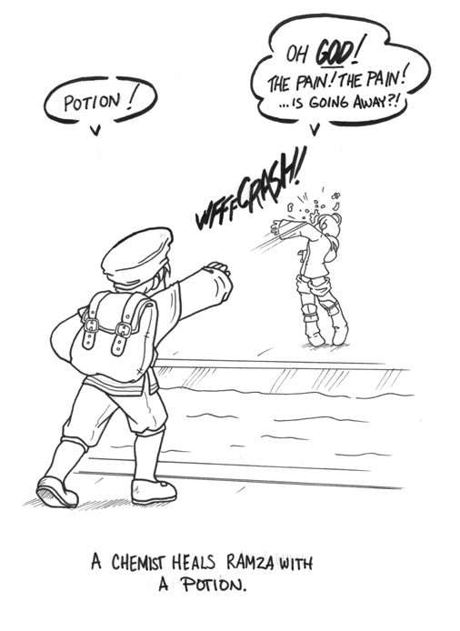 Chemist 'heals' Ramza w/Potion