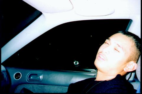Chris showin' off his glowsticks after a night of clubbin' wid Henry and Brian.