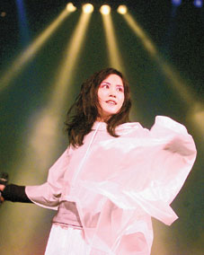 FAYE WONG-NEWSJune 6 Faye is recording songs for her new cd to be released around September!!!Faye will still use Dou Wei and his band despite their relationship.Faye said that her personal matters won't interfere with her music.The songs to be plugged are the theme songs from the Pepsi commercial which she will start shooting this month. May 19 Faye was awarded by MTV Asia for the Best HK Female Singer Award(香港最佳女歌手). Faye's Malaysia Scenic Tour concert will be held soon.It will be held on the 21st of August at Bukit Jalil Indoor Stadium.Tickets go on sale July 7 but you can start ordering them now by clicking here!A song list from Faye's upcoming Scenic Tour concert live recording CD is now available.The cd is rumoured to be released possibly by June or July. Odun has opened a new net radio station called Faye Di-O Station.The programme will only broadcast on weekends.If you want to check it out: 1.Open Winamp 2.Press Ctrl+L 3.Type in http://fayedio.dhs.org:2046 April 25 Faye went to the 18th HK Film Awards on the 24th of April to present an award with Leslie Cheung(張國榮) to Sandra Ng(吳君如) for Best Actress.Here are some realvideo clips of the show. Part 1 Part 2 April 21 Faye will take part in a new movie by Wong Kar Wai(王家衛) called "2046".Faye will be teamed up with Takuya Kimura(木村拓哉) while Tony Leung(梁朝偉) will be paired with his girlfriend Carina Lau(劉嘉玲).The movie which will be filming in October is a sci-fi film with the two pairs acting as secret agents fighting for "Mission 2046". Faye will be one of the presenters in the HK Movie Gold Statue Award Ceremony which commences on the 24st of April. March 30 Faye got nominated in the 10th Golden Song Awards 金曲獎 for the best female artist and best album producer (with Alvin Leong for her cd "Sing and Play").The award will be held on the 30th of April in Taiwan.Good luck to Faye! March 28 Faye made it into the list of 12 songs in the TVB JSG 1st Seasonal Awards Presentation '99.She got in with her song Repayment 償還. March 14(continued) During Faye's last night in Japan, she and her crew members went to have Japanese hotpot as celebration.It was all paid by the concert organiser. After she started drinking some red wine, she went into a childish mood and started to play very freely.She got very high and even hugged and kissed Foon Jeh 寬姐.Other weird things she did were putting her wine cup on her hat and lying down on a table.Her husband Dou Wei however was quietly sitting aside her.When reporters asked if they could both take a picture together, she smiled and refused saying that she hasn't drank yet! After leaving, they then went to a disco to celebrate further. Katie said that Faye would go directly to Hong Kong to start work on her new album.She will also be working on her Pepsi commercial and a new movie. Sources:Oriental Daily,Ming Pao,Singtao Daily,Takung Po and China Times. ![]() ![]() March 14 Faye finished her the last of her two concerts in Japan on March 12 at the Tokyo Budokkan.It was a success and was received well by both the Japanese and Chinese audiences.It also received good words by the media and public.Also one of the good points about the concert were the famous stars who attended it.Takuya Kimura,Takenouchi Yutaka,Noriko Sakai and Leslie Cheung were all there at the concert.Takuya gave a flower basket to Faye to wish her good luck even though they have never met each other in person.Noriko also gave her an oversized piece of clothing with goldfish patterns on it. Faye was also suprised how her "Eyes on Me" single was in the selling chart in Japan. Sources:Oriental Daily,Ming Pao,Singtao Daily,Apple Daily,Minsheng Daily,CNA International and China Times. ![]() ![]() March 12 Faye performed the first of her two concerts in Japan on the 11th of March at the Tokyo Budokkan.The stadium was packed to its capacity of 10000 people!The price of the tickets were as little as 7500 yuan but as much as 8500 yuan.This is about $488 to $553 Hong Kong dollars.The concert attracted Japanese stars like Noriko Sakai and more were coming tomorrow like Leslie Cheung.During the whole concert, Faye was in a good mood and all the fans were enjoying it.Before leaving, Faye spoke in Japanese. She thanked the crowd and said bye to them. Sources:Oriental Daily,Ming Pao and Apple Daily. ![]() ![]()