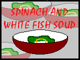 Method of preparation: Bring 1 cup of salted water to the boil, add spinach. Boil spinach for 10 seconds, before removing with a perforated spoon and cooling under running water. Dry on kitchen paper. Dust fish pieces with cornfkour, add to spinach water a few at a time and boil for about 30 seconds. Remove and drain. Place soup stock in a saucepan, bring to simmering point. Add sake, monosodium glutamate, salt and soy sauce. Simmer for 2 minutes. Arrange spinach leaf at the bottom of each of 6 small soup dishes or cups. Add fish pieces and 1 slice lemon rind, and arrange as attractively as possible. Gently add broth to each cup, pouring down the side do as not to disturb the garnish at the bottom. Serve!