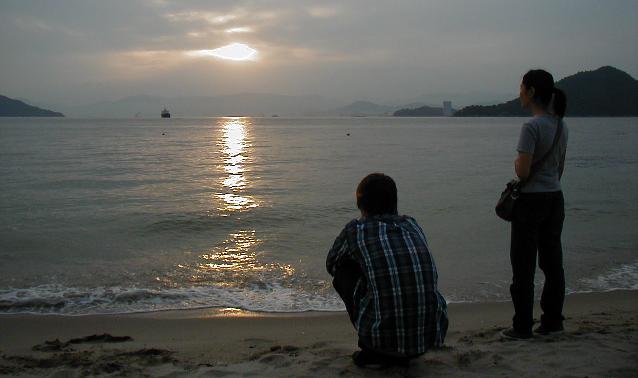 After weeks of trying to get a group of people together for this daytrip (which is nearly an impossible thing in Japan, even on weekends), Cary, Kana and I said we would go. Now, where was the ocean? How do three people with no car get there? When I lived in Kure, a long long time ago, I would sit on the train and stare blankly out the window, and there was one stop in particular that I remembered. It was a stretch of beach, sand and water, just beyond the train platform, with hardly any people around (well, it was winter). 水(mizu=water) was the first kanji, but I couldnt remember the rest. Water --> Ocean, it wasnt hard to remember. So with me as a quasi-navigator, everyone got on the train and we saw a stop that said 水尻(mizushiri) and I knew that was it. It's hard to believe that a 20 minute trainride away from downtown is a beach. But there it was.