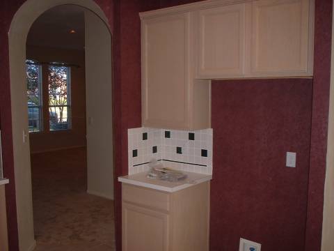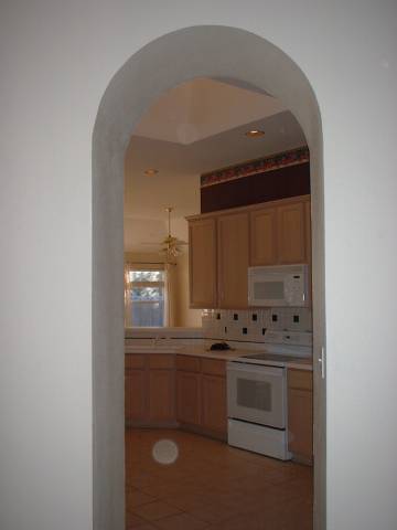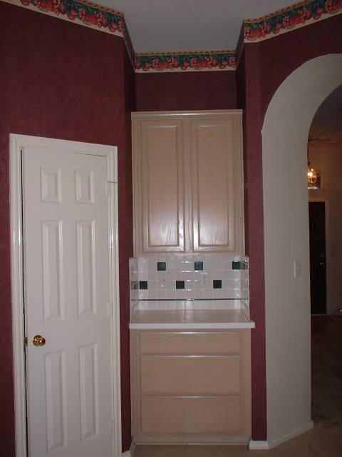 Kitchen: Cabinet and Surface Top (Door to Pantry on Left; Arched Entryway on Right)