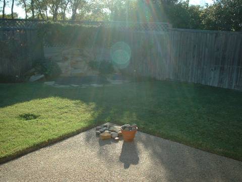 Center of Backyard (Patio in Foreground; Pond/Waterfall in Background)