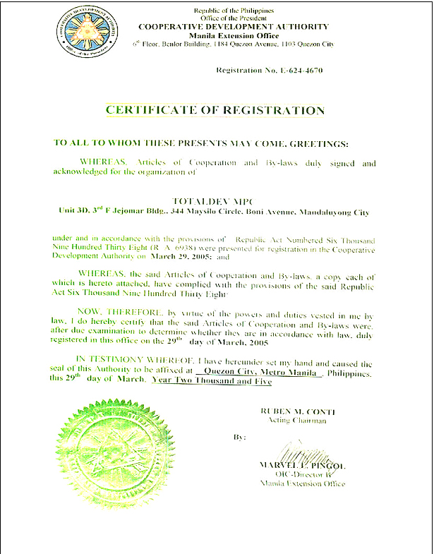 Totaldev History Vision & Mission Statement Corporate Values Our Credentials Our Product / Services Financial Highlights Partner-Companies The Chairman’s Message Cooperativism Officers and Board of Directors |