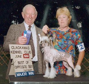 | aka Faxe ** a white & sable spotted hairless Chinese Crested Sire: Ch. Jewel's Fabulous Fabio - out of - Dam: Am/Int. Ch. Snowcrest Xena Warrior Princess |