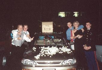 | Carrie just paid $200 for a detail. A few cans of funny foam, streamers, peanuts and balloons took care of that. |