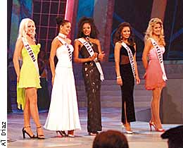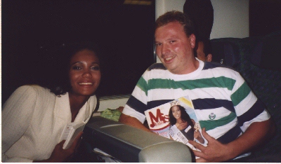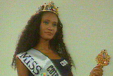 The site was Miami Beach, Florida, USA. Ribbons flashed in the air in a spectacular array of color and beauty which was further enhanced with the ebony enchantress, Denny Mendez. Originally, it was anticipated that this pageant would have beaten the record for having the most delegates but the end result was 74 delegates participants due to some unfortunate dropouts which was a significant drop considering the highest numbers in the last five years. The sounds of "Party Time (You'll Be Mine)" by Gloria Estefan were blaring causing the entire audience to move to the beat. Denny was no exception. She was all over the place dancing and running around as if she was having the time of her life. The opening number saw her running up the stairs and standing in the middle of the stage when the delegates did the wave. She may have missed her turn because she turned away but Denny didn't care, she just ran on waving her hands in the air having so much fun. During the parade of nations, Denny, who was wearing a beige high cut dress with a white top showing off her fabulous legs. Her bio on the website said that she was 5'9" but she certainly looked taller than that! Her big beautiful frizzy black hair may have had something to do with that and, of course, Denny's dark skin glistened in the light. When it came her turn to speak, she had her hands on hips and in a very sudden not so fun and rather conceited tone she uttered, "My name is Denny Mendez, I came from ITALIA." As you can tell the emphasis was on the word, ITALIA. Denny wasn't going to say Italy just from the Americans. Nonetheless, she succeeded her statement with a snobbish nose in the air and uplifting of the head to say either "I'm so great" or "I'm representing Italy and there's nothing you can do about it!!" You go, Denny!!
