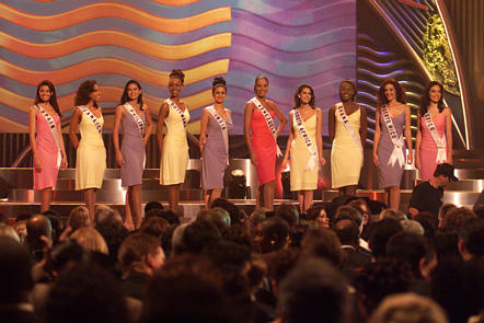 The swimsuit segment with a little bit of "Limbo Fire" was again very energetic and exciting. The delegates themselves really didn't do much though. Spain had sensational form and she broke the hex that the delegate who was called first recently had for some time. Mexico's stance could have used some work but she did look shapely. Jamaica needed more bust but she was fit. She was cute when she turned away from the audience and suddenly turned back. Puerto Rico looked fantastic and I must admit I was surprised at her low score as I was with Ana Rosa Brito! I did noticed Brenda's ribs poking out on occasion but she looked good. Miss Philippines had excellent form. I think the judges knew about Miriam's notorious fall so this may have helped her to get high scores. Did you notice how she placed her hands to make her shoulders look broader? Out comes Miss Ghana and I could think of at least 30 delegates who had better bodies than her because her form was not very appealing and her legs were not exactly ideal. I wasn't surprised at this score but I was surprised that she beat Miss India by a hundredth. Botswana had a figure similar to Wendy Fitzwilliam. She looked great as any Miss Universe should. South Africa also had an excellent form. Sonia definitely has the look of an American celebrity. To me, she looks like Mariah Carey with darker hair but some other people say she looks like Jennifer Love Hewitt. She definitely has a look though. Here comes Miss India complete with her ENORMOUS BREASTS! I couldn't believe I never noticed the size of her breasts before. They were huge! As Oprah Winfrey's best friend Gail said to Oprah, "I have a black eye...One of your boobs hit me in the face!" Gul could have used some toning. Carolina Indriago look so striking and I thought her score was way too low. Venezuela never ever hits 6th place!! What happened?! Julie also mentioned that there wasn't much focus on breasts this year but Miss India had enough breasts for everybody so that was fine. The final limbo was freaky but she did it and they must have put something in her hair to keep it from catching fire.